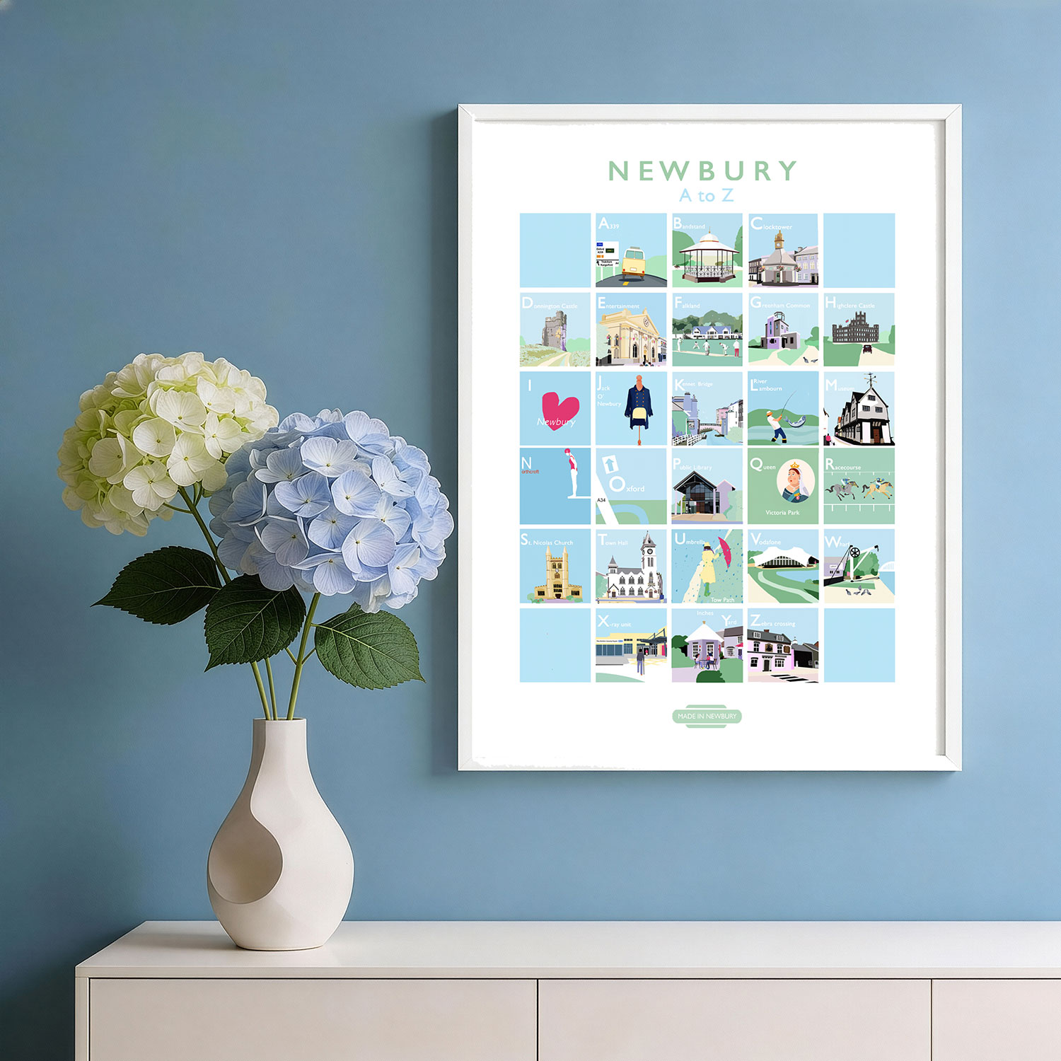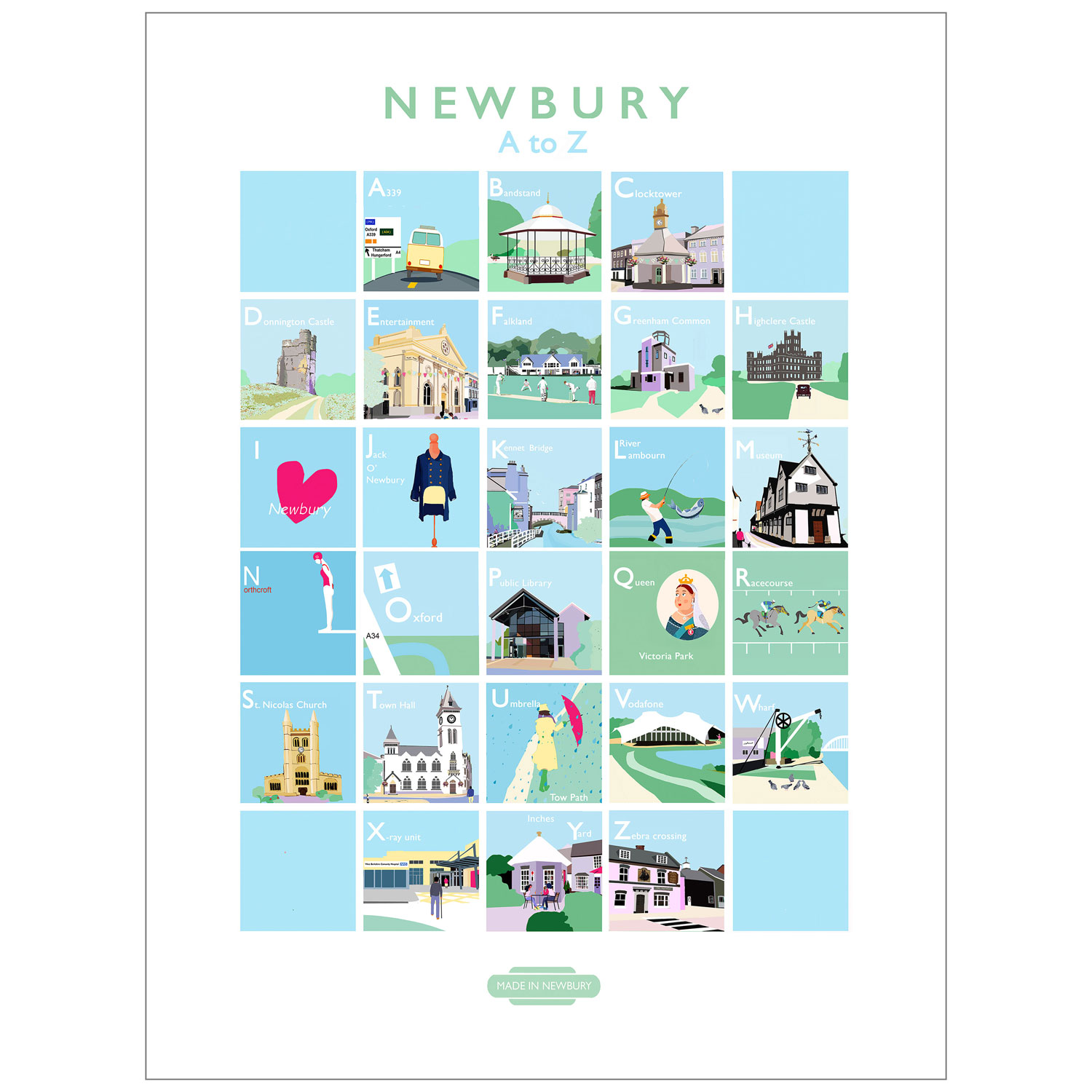 The print feature’s locations in and around Newbury, a lovely market town, with the Kennet and Avon canal running through its centre.